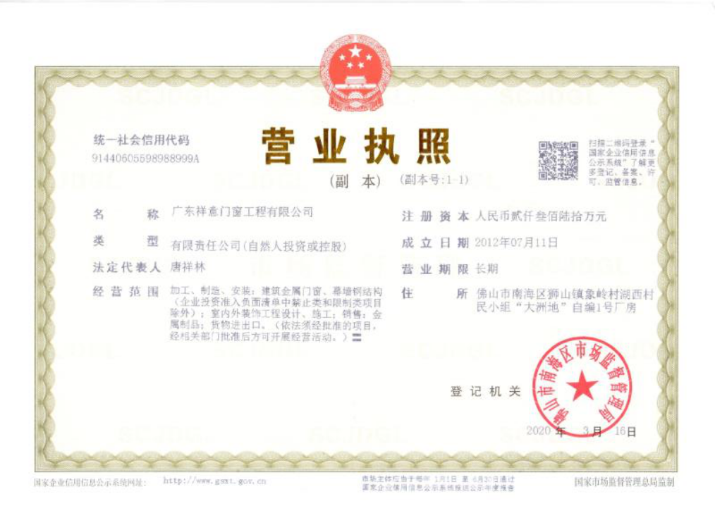 廣東祥意門窗工程有限公司是一家專注鋁合金門窗工程及門窗加工、制作的優(yōu)質(zhì)企業(yè)。公司憑著精湛的技術(shù)服務(wù)和優(yōu)良的售后服務(wù),已成功完成多個(gè)優(yōu)質(zhì)項(xiàng)目。